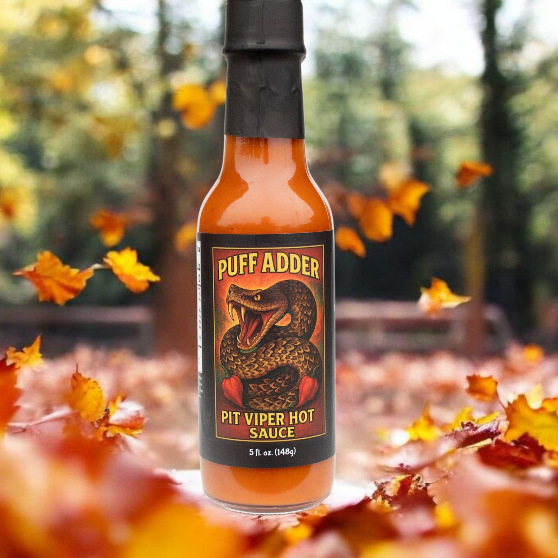 Puff Adder coils together the deep, smoky bite of chipotle and Carolina Reaper heat with the tropical sweetness of pineapple, honey, and citrus. Every drop strikes the perfect balance between smooth sweetness and fiery sting — a slow-burning flavor that builds without overpowering.
